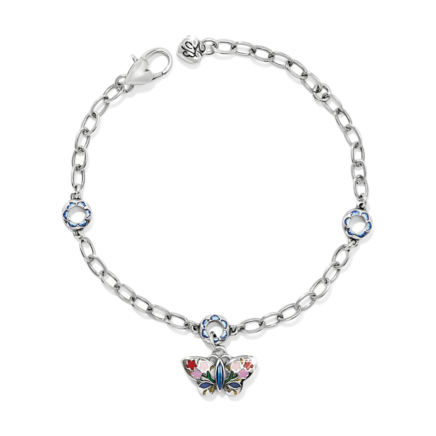 A hand painted enamel butterfly with hand-set crystal accents was inspired by our designer’s trip to Australia. Collection: Sydney Color: Silver-Multi Closure: Lobster Claw Material: Fine quality crystals, Enamel Finish: Silver plated