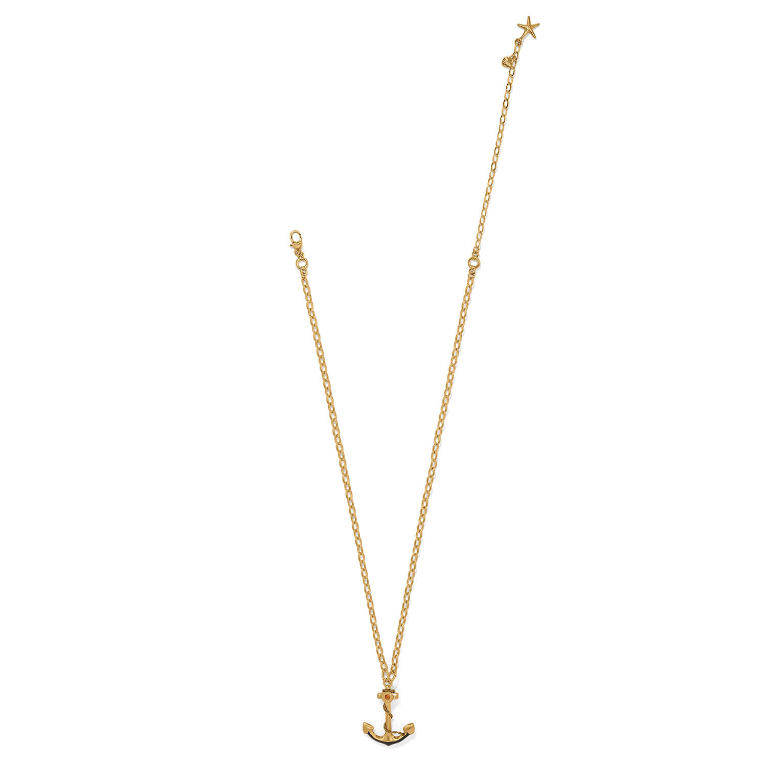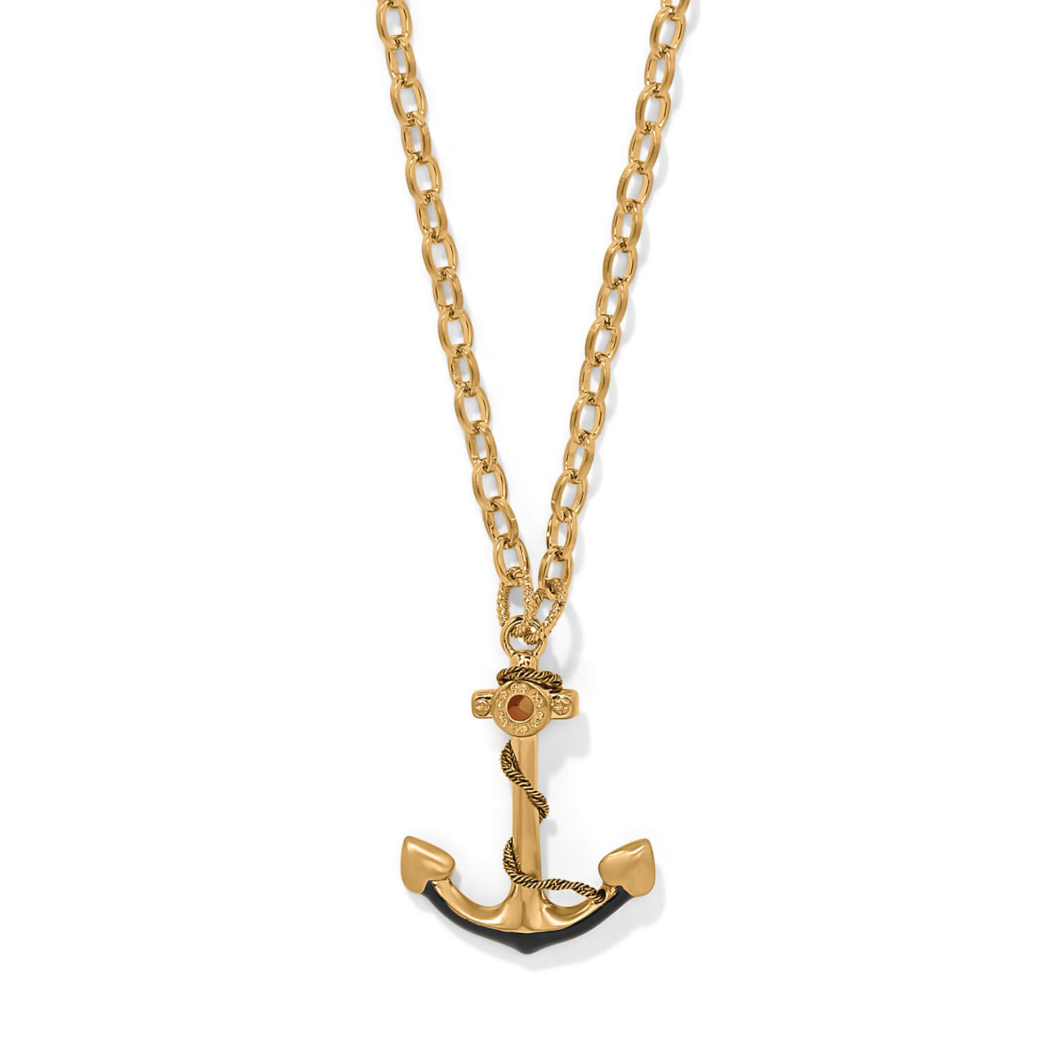 Reminiscent of oceanic depths where light is nearly imperceptible, this nautical anchor pendant shines combining brushed gold, black enamel and sparkle. Collection: Twilight Waters Color: Gold Closure: Lobster Claw Material: Fine quality crystal, Enamel Finish: Gold plated