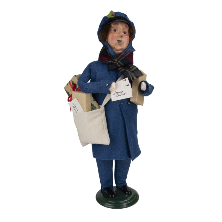 This handcrafted Byers’ Choice Postman figurine is festive and perfect for the Christmas holiday season. Our Postman Christmas figurine delivers more than mail—he brings holiday cheer, warm greetings, and the spirit of connection that makes Christmas special. Carrying a satchel full of letters, cards, and maybe even a wish list bound for the North Pole, the Postman spreads joy from door to door, one delivery at a time.