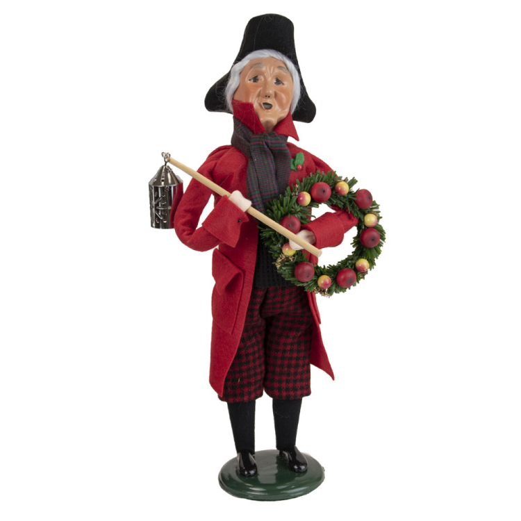 Byers Choice - Town Watchman Size: 13" Inches London's Town Watchman patrols the streets of the parish between the hours of 9 pm to 6 am. He wears a cloak, hat, and is armed with a lantern to attract attention.
