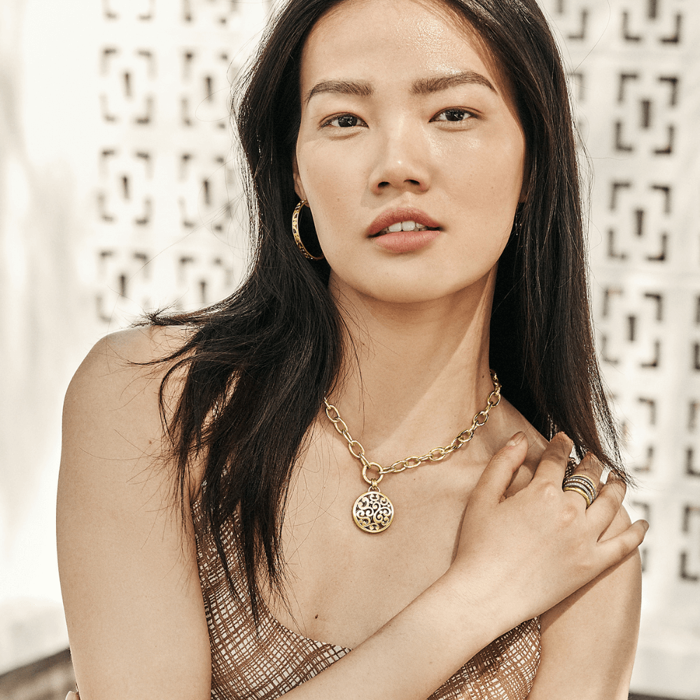 The artful (and ever popular) scrollwork from our Contempo Collection has been transformed once again, this time onto gorgeous, face-flattering hoop earrings. This interpretation was inspired by vintage silverwork from Taxco, Mexico! Type: Post with Lever Back Finish: Gold plated