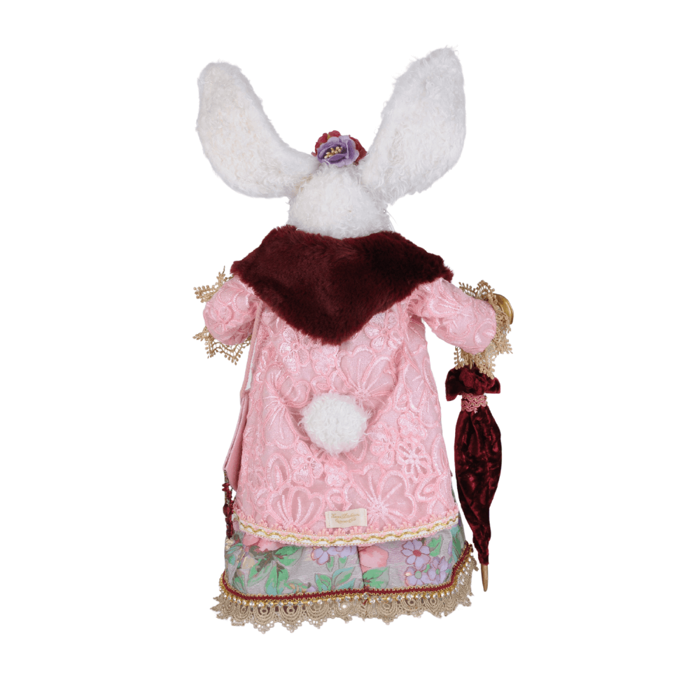 Florence Bunny is a heartwarming addition to your spring collection. This collectible includes a beautiful soft-fluffy exterior, soft pink and burgundy spring attire created from stunning lace and her dazzling crystal and gold umbrella and stunning pearl accents. Her elegant design and charming personality will add character and style to any home.