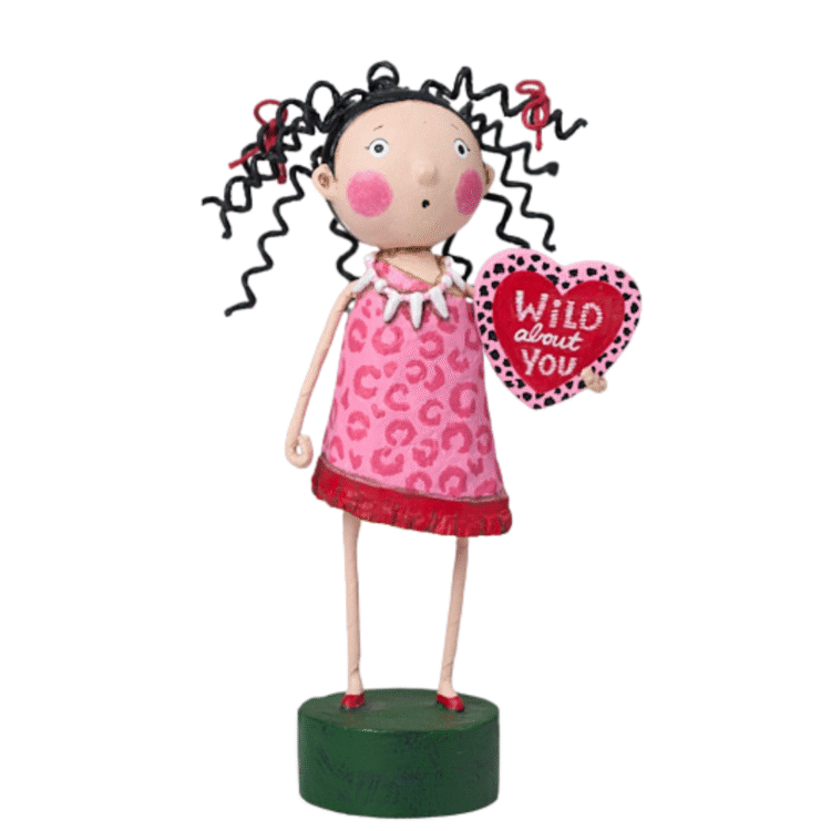 This little character is a total free spirit! With her wild dark hair and stylish pink dress, she’s bursting with personality. And in her hands, she proudly holds a heart with her bold message—Wild About You!