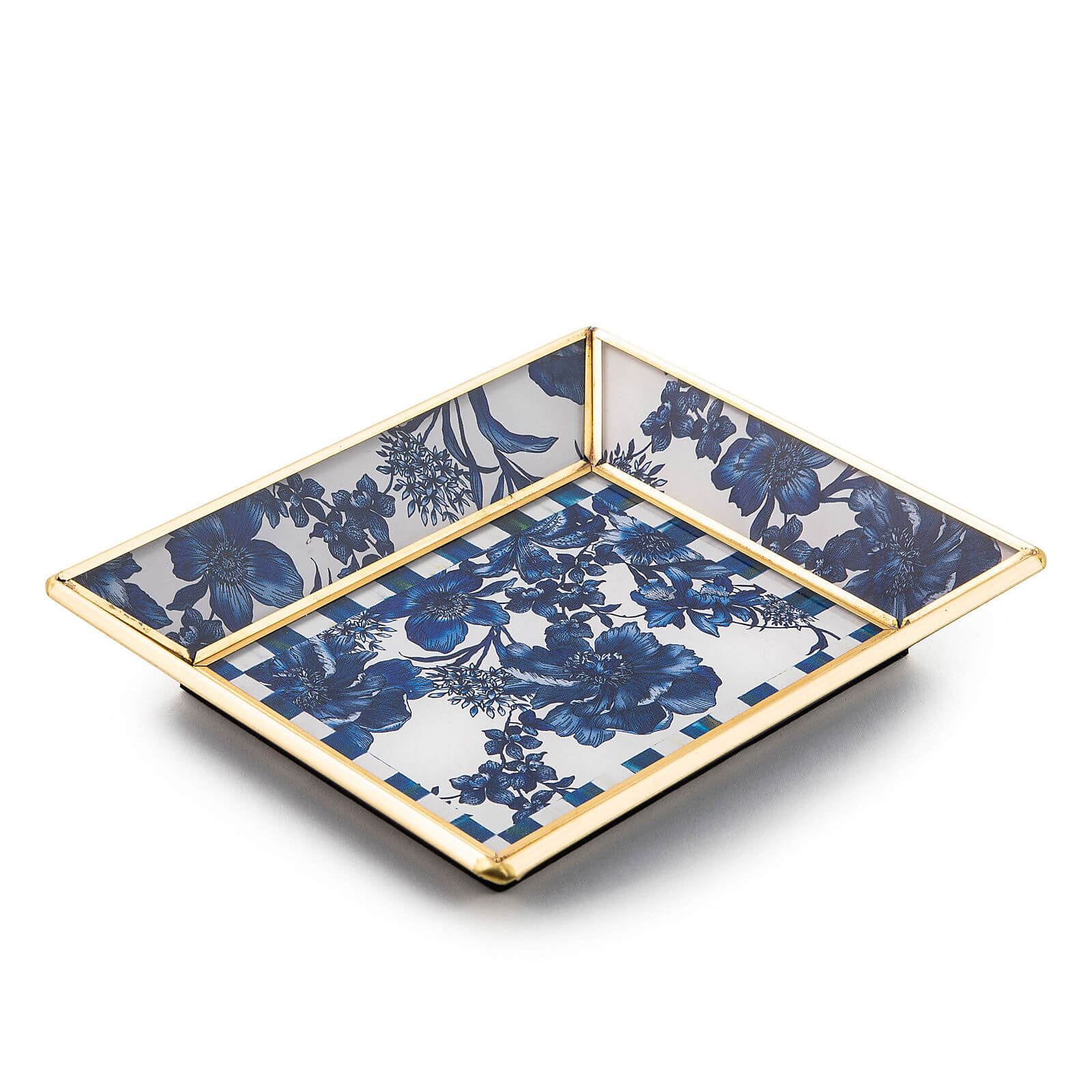 Make any room stylish with this fun and functional small tray, featuring a pattern of blue florals and Royal Check® printed on glass, finished with beveled edges. It’s just the right size for holding trinkets.